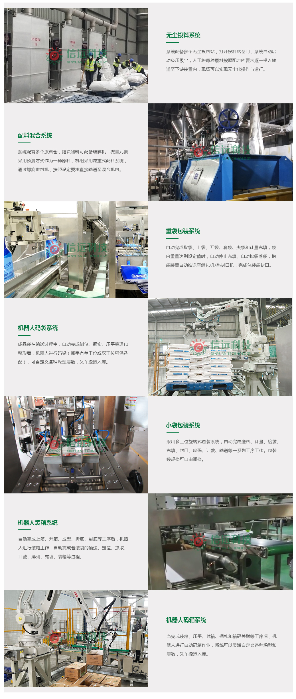 投料、配料、混合、計(jì)量、包裝、碼垛、除塵于一體