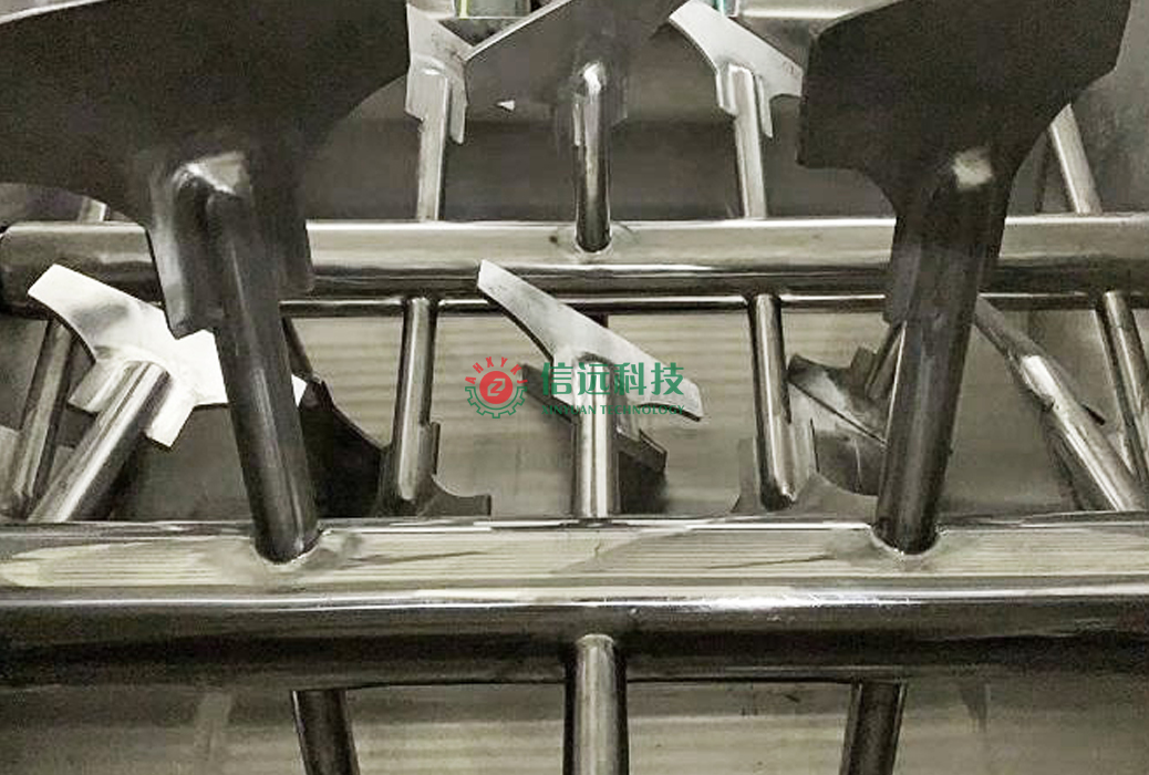 信遠科技最新款的雙軸槳葉混合機,由主機、筒體容器、攪拌裝置、真空泵和電器控制系統(tǒng)等主要組成部分??梢源钶d不同電機、減速機驅(qū)動部件配置,滿足更多復雜工況;該設(shè)備在化工、化肥、農(nóng)(獸)藥、飼料、耐火材料、建材、干粉砂漿、冶金、煉油、染料、助劑、電池、電子塑料、陶瓷、制釉、玻璃、食品、醫(yī)藥等不同行業(yè)領(lǐng)域的粉劑+粉劑、粉劑+液體(少量)的混合中表現(xiàn)出了優(yōu)良的應(yīng)用水平。