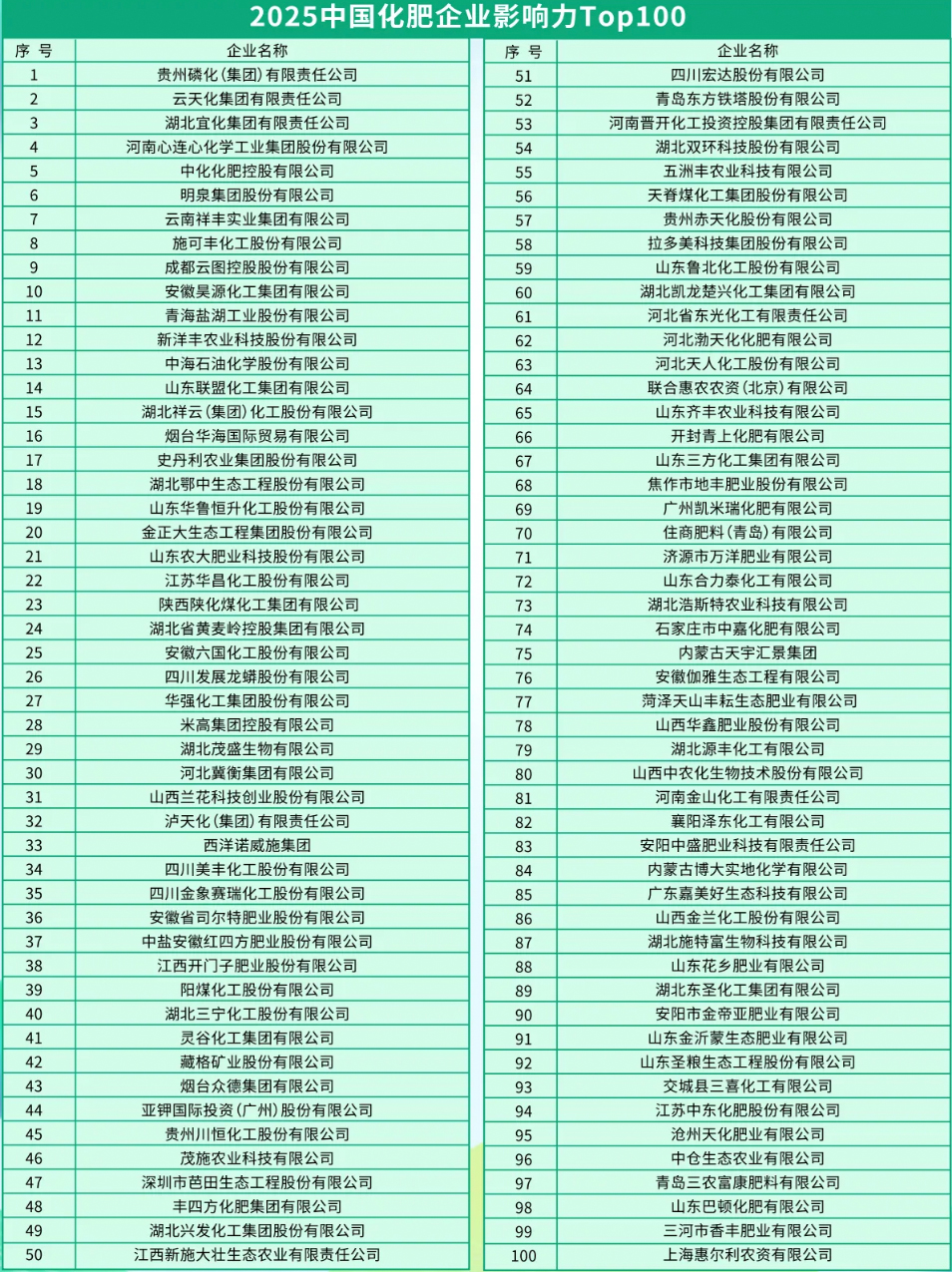 2025中國化肥企業(yè)影響力Top100強(qiáng)榜單中,國有企業(yè)仍然是行業(yè)的中堅力量,且排名靠前